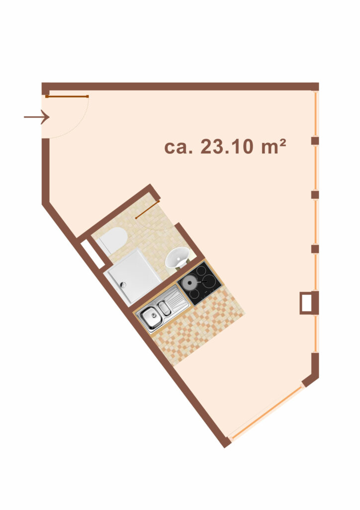 Studio-Apartments in verschiedenen Größen bis 43 m²