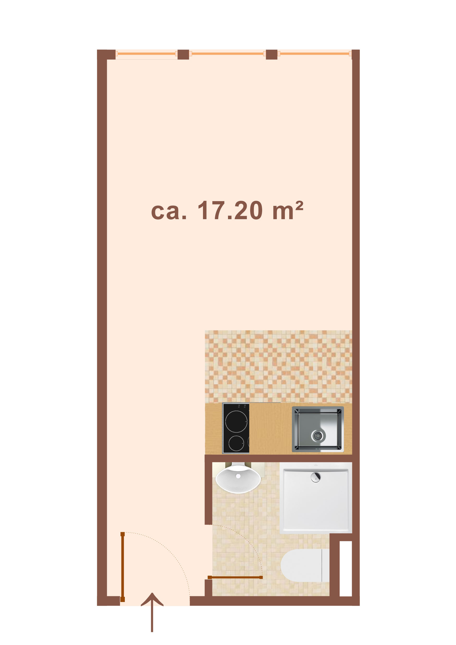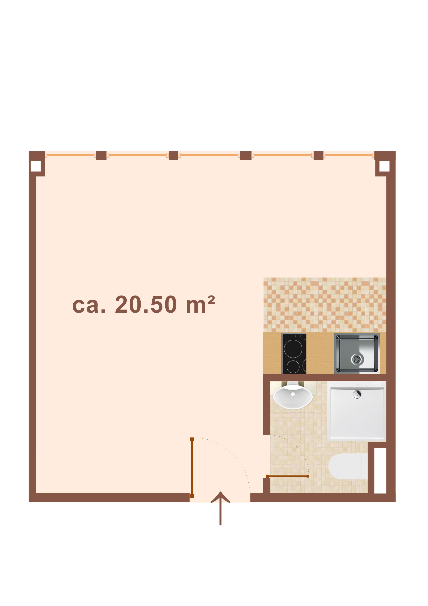 Studio-Apartments in verschiedenen Größen bis 43 m²